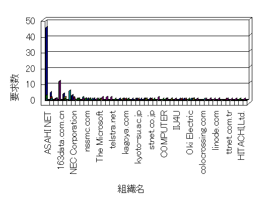 組織ユーザーにインターネット接続を提供する、商用または非営利団体、学術・行政機関などの、インターネット ドメイン で識別される団体や組織です。Microsoft Site Server Analysis は同じ組織に登録されたすべてのドメインを 1 つの組織としてグループ化します。ドメインがデータベースで使用できない場合は、1 つのインターネット ドメインが 1 つの組織を識別するのに使用されます。